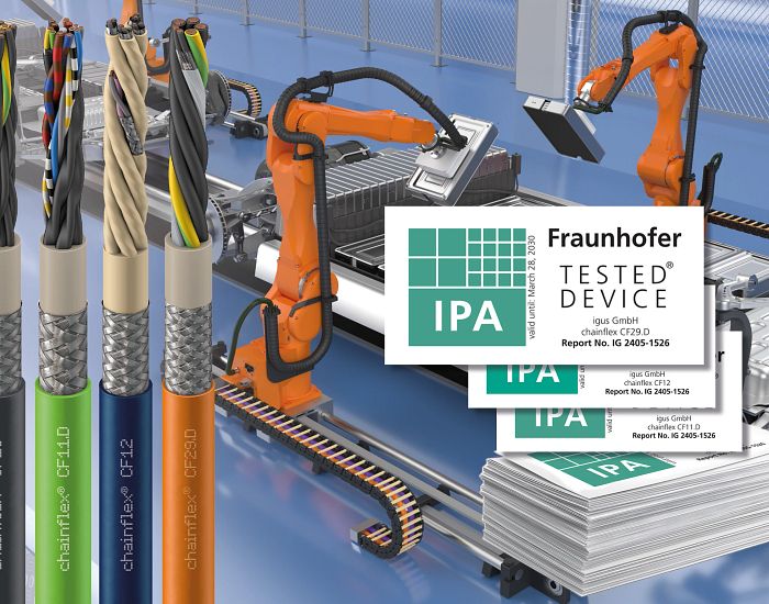 El número de salas blancas secas está aumentando por todo el mundo. El objetivo principal es automatizar los sistemas para garantizar una producción rápida y rentable. Además de sus cadenas portacables certificadas para salas blancas secas, ahora igus también ha certificado con éxito sus cables TPE chainflex libres de halógenos por el Instituto Fraunhofer de Ingeniería de Fabricación y Automatización (IPA) de acuerdo con las clases 4 y 5 para salas blancas secas. Esto proporciona a los clientes de la producción de baterías altamente automatizada soluciones de gestión de la energía con una vida útil fiable garantizada de hasta cuatro años.