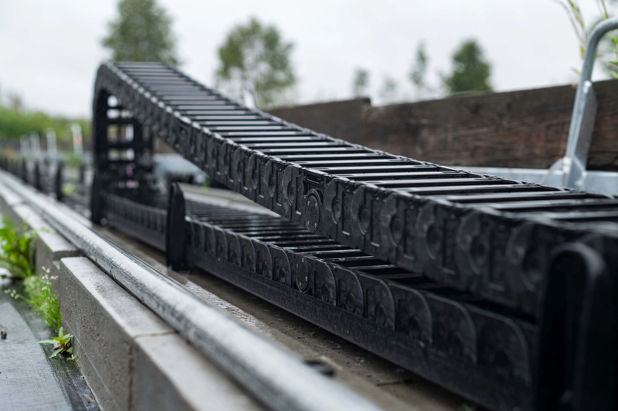 Con el apoyo de los expertos de OEM Automatic, Lundström encontró lo que buscaba en igus, una empresa de Colonia experta en plásticos técnicos para movimiento. igus desarrolla cadenas portacables hechas de plásticos de alto rendimiento para aplicaciones industriales desde hace décadas. El dispositivo de riego automatizado de Södra está equipado con el sistema de cadena portacables de la serie E4.1R, que actúa como una especie de protección móvil y garantiza que las mangueras de agua se mantengan en la posición correcta mientras siguen los movimientos del sistema de riego.