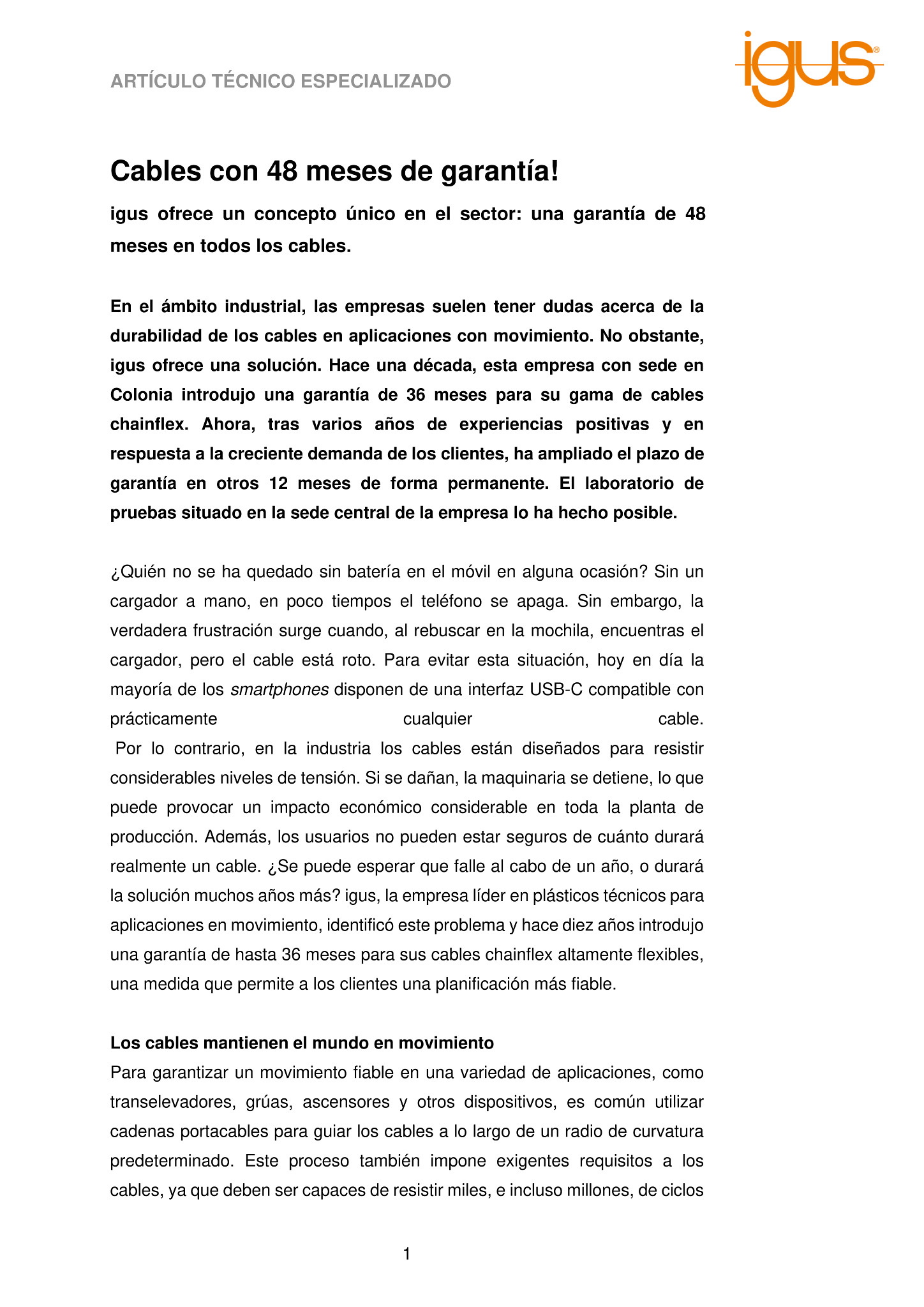igus ofrece un concepto único en el sector: una garantía de 48 meses en todos los cables.