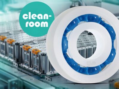 Además de las cadenas portacables, igus ofrece ahora también rodamientos de bolas fabricados con plásticos de alto rendimiento resistentes a la abrasión especialmente para salas blancas. Los nuevos cojinetes de polímero de la serie xiros se han desarrollado específicamente para aplicaciones altamente sensibles en la producción de baterías y la industria de semiconductores, por ejemplo, para su uso en rodillos transportadores. Los nuevos rodamientos de bolas se caracterizan por una gran resistencia a la abrasión y a los productos químicos, así como por una emisión mínima de partículas.