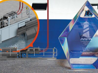 Con su sistema de suministro de energía móvil (iMSPO), igus ha desarrollado un sistema de cold ironing para puertos que puede desplazarse con flexibilidad en función de la posición de los barcos en el muelle. El sistema permite a los buques apagar sus motores diésel en los puertos, cambiar a una fuente de energía en tierra más respetuosa con el medio ambiente y reducir así significativamente sus emisiones de CO2. Por su papel fundamental en la promoción de operaciones portuarias sostenibles y flexibles, igus ha sido galardonado como «Innovador Marítimo del Año». El premio se entregó durante la conferencia de la Asociación Americana de Autoridades Portuarias (AAPA) celebrada en Quebec (Canadá).