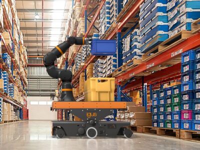 Con el nuevo ReBeL Move, presentado en la Motek 2024, igus demuestra que la automatización de procesos de manipulación no tiene por qué ser cara ni complicada. Este robot móvil se desplaza de manera autónoma por las naves de la fábrica, transportando productos de un lugar a otro. También puede combinarse con el brazo robótico ReBeL, fabricado con plástico de alto rendimiento, por solo 38.288€. En apenas 1 hora cualquiera con conocimientos básicos de programación puede ponerlo en marcha sin complicaciones.